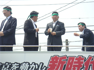 首都決戦 都議会議員選挙 その1 私が応援した、大西英男都議会議員は、お陰様で4期目の当選をすることができました。 地域の皆様方におかれましては、いろいろとご支援ありがとうございました。 ☆出陣式の様子☆