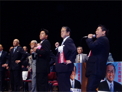 衆議院議員選挙 突然の郵政解散 ☆衆議院議員選挙☆突然の郵政解散。 改革を進めるべきか、それともこのまま既得権益に縛られたままの日本でよいのか。 国民の皆様に信を問う選挙でした。 お陰様で私の所属する自民党及び島村よしのぶ候補は多くのご支持を頂き勝利することができました。 ご支援ありがとうござました。 ○写真は、島村よしのぶ代議士の決起大会の様子です。 区議会自民党を代表して同僚の福本議員と「ガンバロー」コールをやりました。