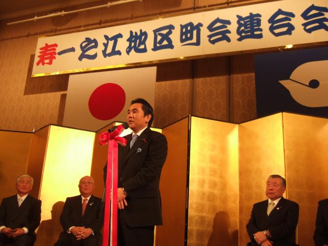 一之江地区町会連合会の新年会に出席しました。 加藤会長さんを中心に今年も地域発展のためによろしくお願いします。