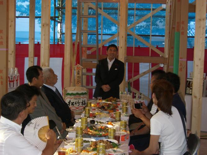 日頃から大変お世話になっております。後援会の方の上棟式に出席しました。工事の安全と素晴らしい建物の完成をお祈りしますとの挨拶わしました。