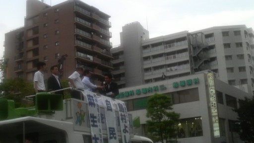 自由民主党総裁麻生総理が船堀駅に来ました。2500人の聴衆の前で国政について熱く語りました。