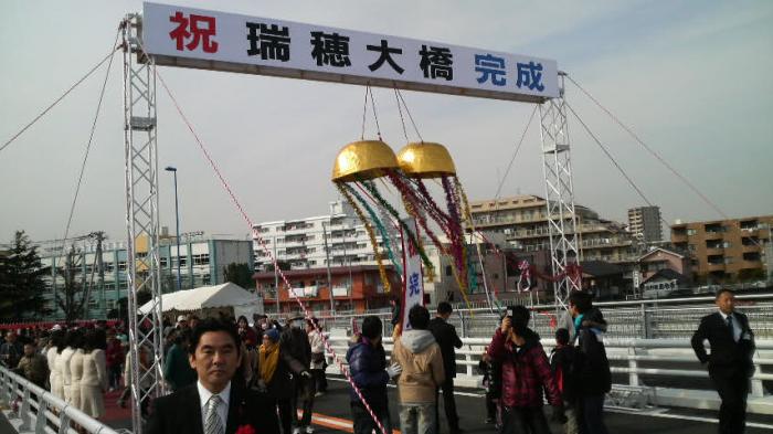 瑞穂大橋完成式典 2月13日に開通する。瑞穂大橋の完成記念式典に出席。 名前の由来は、昔その地域が瑞穂村という地域だったということでついたとのことです。今その地名が残っていのは、この橋だけになりました。