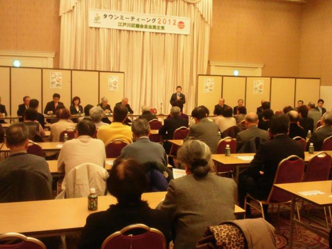 タウンミーティング開催 地域の皆様の声を聞いて、その声を今後の区政に活していくためにに対話集会タウンミーティングを開催しまた。 当日は、多くの方々が来場し建設的な意見をいただきました。自民党として、はじめての試みでしが、今後も継続していく予定です。2月6日は、小岩ニューオークラで開催します。