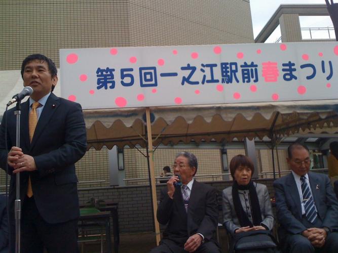 一之江駅前はるまつり 一之江駅前はるまつりに出席。 一之江駅前商店街の皆様が中心になって、駅前広場ではるまつりが開催されました。 昨年は、震災の影響で中止になりました。 当たり前のようにお祭りができることは、本当にありがたいことです。