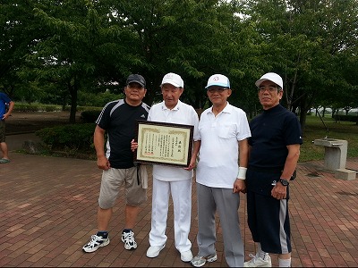 小松川ラジオ体操 しあわせ会 ラジオ体操の会 しあわせ会のラジオ体操に参加。 本会は、この度日頃の活動が評価されて東京都ラジオ体操連盟より表彰されました。 賞状、たてのご披露がありました。 写真は、会長の小川さんをはじめ会の皆様です。