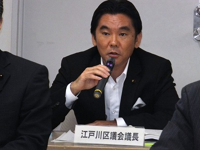 東京都副知事との意見交換会 東京都副知事と意見化交換会 江戸川区としては、昨今の集中豪雨によって道路冠水や市街地の冠水が頻繁に発生しているので、下水道処理能力増強、一時雨をためる貯留施設の建設の促進が必要だと副都知事に具申しました。