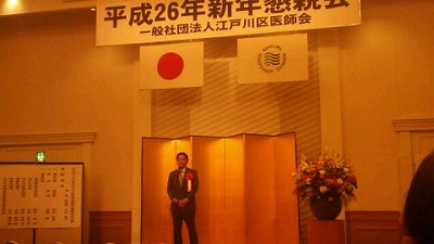 連日新年会 毎日、毎日、ホームページで紹介しきれないほど新年会に出席しています。ほんの一端を紹介しています。 江戸川区医師会の新年会に出席しました。 本年も本区の健康施策の為にご尽力をお願いします。とあいさつしました。