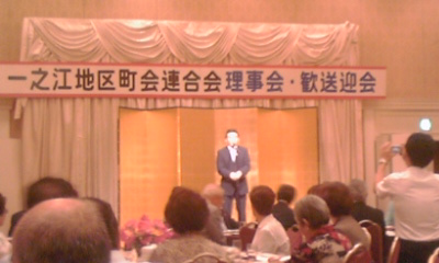 一之江地区町会連合会 歓送迎会 一之江地区町会連合会歓送迎会に出席。 長い間お勤めいただいた、都営第二自治会宮内会長様お疲れ様でした。また、新規に同会の会長にご就任されます。 木村会長様におかれましたは、ぜひよろしくお願いいたします。