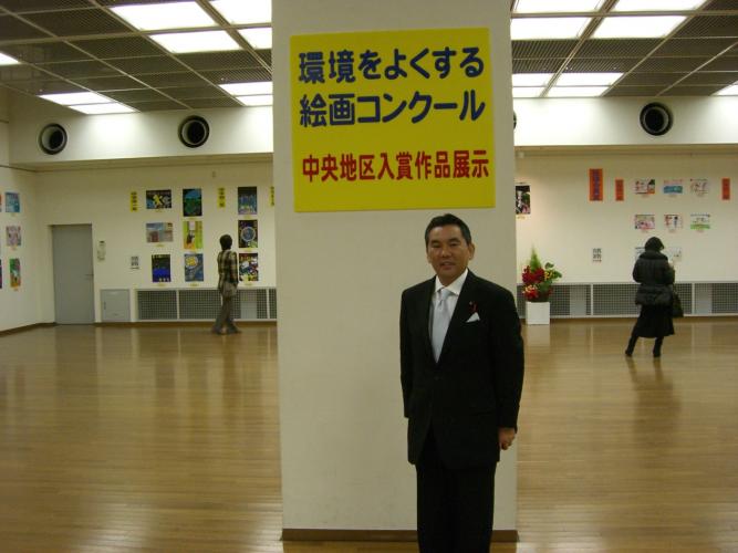 地域の小中学生が環境をテーマに書いた絵画コンクールの表彰式に出席。子供達が環境について考えることが大切です。