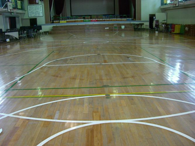 地域陳情報告 地域の皆様からの陳情を受けて、一之江第二小学校 の体育館の床全面張替え工事ができました。 今年は、一之江第二小学校の40周年記念です。これで、綺麗な床で記念式典ができます。 改装前 改装後
