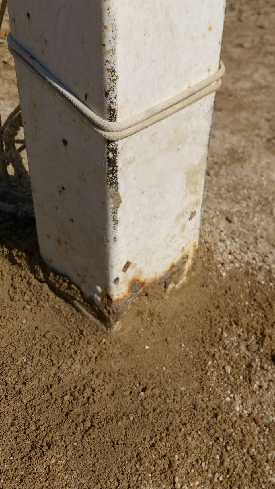 なぎさ公園のサッカーゴールのポールが、旧型の四角のポールでしので新品に交換しました。